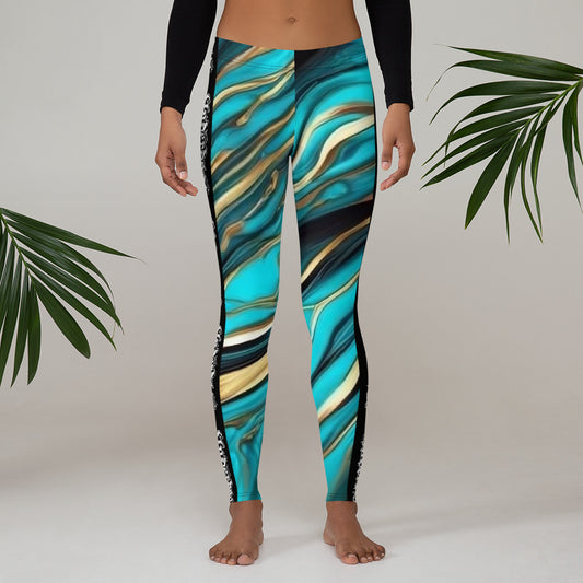 Sport-Leggings Türkis-Gold Marble Look, mit Handytasche