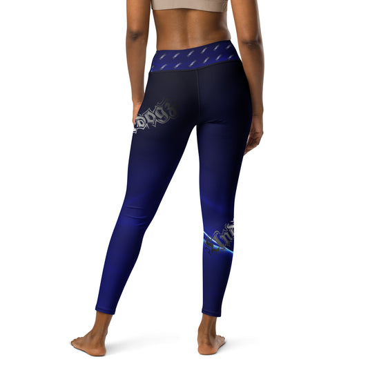 Sport-Leggings Snake Metallic Blau mit Handytasche
