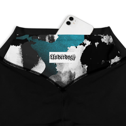 Sport-Leggings Türkis Marmor-Look, mit Handytasche