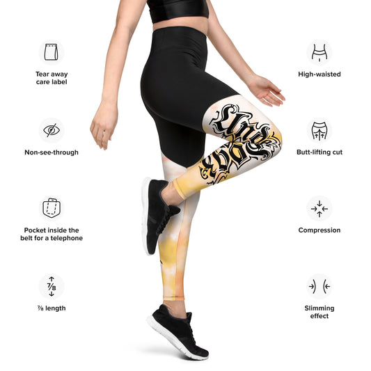 Sport-Leggings ,Push it to the limit‘ Gold/Stripes mit Handytasche