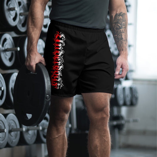 Recycelte Sport-Shorts für Herren schwarz- Logo Orange
